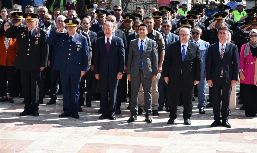Bilecik'te, kentin düşman işgalinden kurtuluşunun 102'nci yıl dönümü dolayısıyla kutlama programı düzenlendi. Törende, TBMM Milli Savunma Komisyonu Başkanı Hulusi Akar (sol 3), Bilecik Valisi Şefik Aygöl (sol 4), AK Parti Bilecik Milletvekili Halil Eldemir (sağ 2), CHP Bilecik Milletvekili Yaşar Tüzün (sağ), Jandarma Eğitim Komutanı Jandarma Tümgeneral Uğur Ertekin (sol) ile Eskişehir Hava Savunma Komutanı Hava Tümgeneral Ertunç Ertufanlı (sol) da yer aldı.