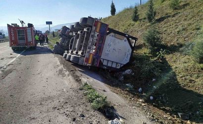 Bilecik Selimiye Köyü'nde tır devrildi; sürücü yaralandı