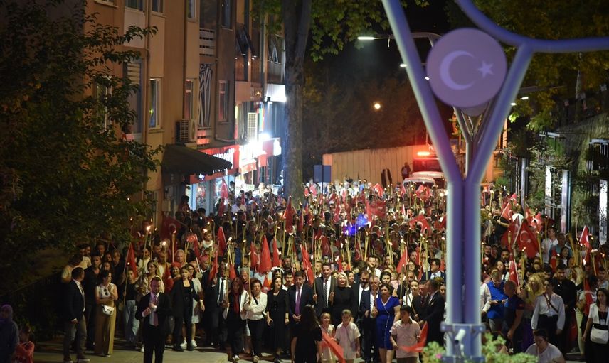 Tevfikbey Caddesi ve Atatürk Bulvarı boyunca ilerleyen fener alayı, Cumhuriyet Meydanı'nda son buldu. Vatandaşlar, ellerindeki Türk bayrakları ve fenerlerle yürüyerek, bando eşliğinde coşkuyla sloganlar attılar.