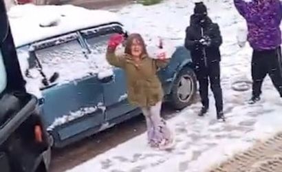 Operatör Ferdi Yılmaz yönetimindeki kepçe, Hürriyet Mahallesi'ndeki yolları açmak üzere çalışırken, sokakta oynayan çocuklar aracın karları temizlemesini engellemek amacıyla kar toplarıyla tepki gösterdi.
