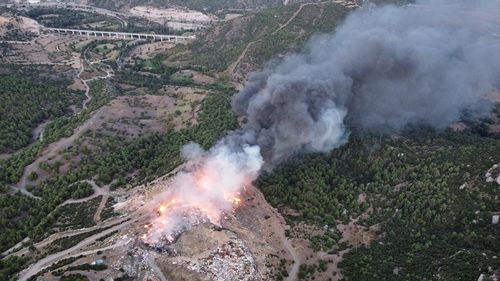 Bilecik'teki çöplük alanda çıkan yangın, itfaiye ekipleri tarafından kontrol altına alınmaya çalışılıyor.