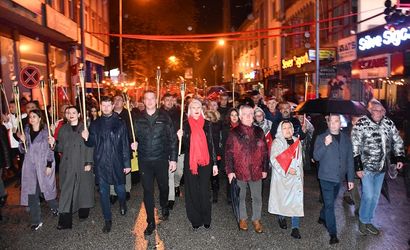 Bilecik'te Cumhuriyet'in 102. yıl dönümü ve 29 Ekim Cumhuriyet Bayramı etkinlikleri kapsamında fener alayı gerçekleştirildi. Sağanak altında ellerinde Türk bayrakları ve fenerlerle yürüyen vatandaşlar, bando eşliğinde marşlar söyledi.