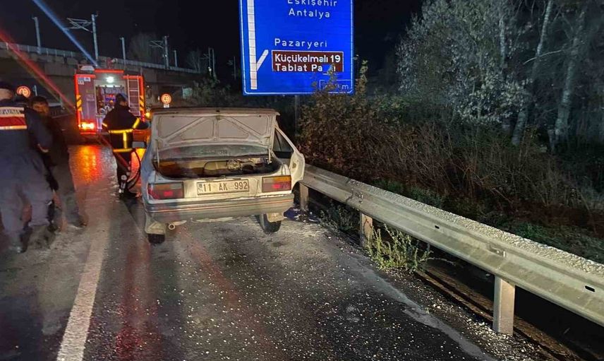 Olay, Pazaryeri ilçesine bağlı Demirköy köyü mevkiinde meydana geldi. Bilecik-Bozüyük istikametinde seyir halindeki aracın sürücüsü İsmail K. (69) idaresindeki 11 AK 992 plakalı otomobil, elektrik arızası nedeniyle motor kısmından aniden alev aldı.