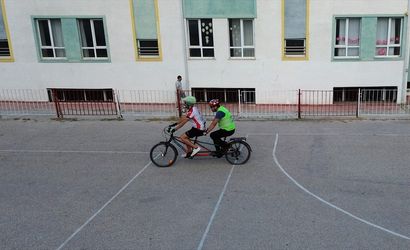 Bilecik'te görme engelliler, kılavuz sürücü eşliğinde tandem bisiklet kullandı. Altı Nokta Körler Derneğince düzenlenen etkinlikte, kılavuz sürücü Bisikletliler Derneği İl Temsilcisi Hakan Yavuz'a "ayak" olan görme engelliler, tandem bisikletle pedal çevirdi.
