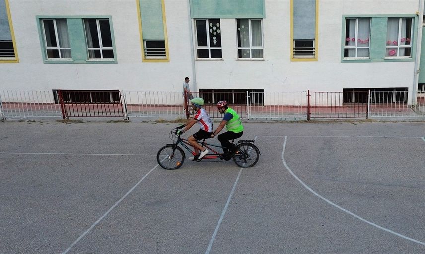 Altı Nokta Körler Derneği üyeleri, kılavuz sürücü eşliğinde iki kişilik tandem bisiklet kullandı. Etkinlik, Osmangazi Ortaokulu bahçesinde düzenlendi ve Bisikletliler Derneği İl Temsilcisi Hakan Yavuz rehberliğinde gerçekleştirildi.