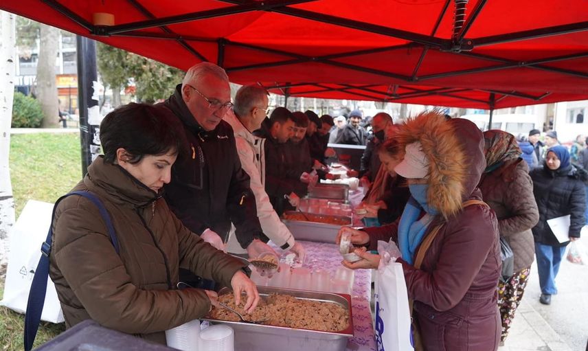 Bilecik Belediyesi, Miraç Kandili vesilesiyle şehir merkezinde vatandaşlara helva ikramı gerçekleştirdi. Program, belediye tarafından düzenlenerek katılımcılara ikram sunuldu.