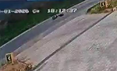 Kaza anında araç sürücüsü Kadir Y. yağışlı hava koşulları nedeniyle bir anda direksiyon hakimiyetini kaybetti. Kontrolden çıkan motosiklet devrildi ve sürücü yaralandı. Olay anı, akaryakıt istasyonunun güvenlik kamerası kayıtlarına yansıdı.