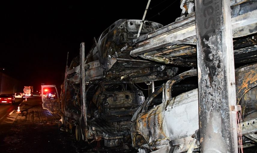 Olayı görenlerin ihbarı üzerine bölgeye polis, sağlık ve itfaiye ekipleri sevk edildi. İtfaiye ekipleri, yangını kontrol altına alarak söndürdü. Ancak, yangın sonucunda tır ve içerisindeki otomobiller kullanılamaz hale geldi.