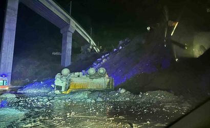 Bilecik’te YHT şantiyesinde kamyon 15 metre yükseklikten devrildi