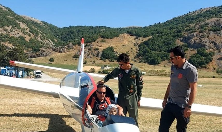 Burada Havacılık Eğitim Merkezi Koordinatörü Ali Zaimoğlu eşliğinde planörle uçuş gerçekleştiren Türksoy, hayalini gerçekleştirmiş oldu.