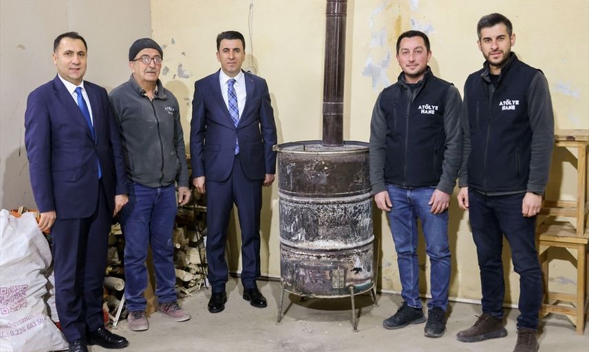 Bilecik Valisi Şefik Aygöl (sağ), 6 Şubat 2023'te yaşanan, "asrın felaketi" olarak nitelenen Kahramanmaraş merkezli depremlerden etkilenip ailesiyle memleketi Hatay'dan Bilecik'e yerleşen Adil Kenziman'a (sol), çalıştığı mobilya atölyesinde ziyarette bulundu. Ziyarette, Aile ve Sosyal Hizmetler İl Müdürü İlkay Türkoğlu da (orta) yer aldı.