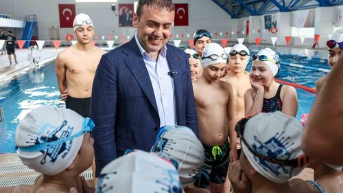 Bilecik Valisi Faik Oktay Sözer kapalı yüzme havuzunda sporcularla bir araya geldi