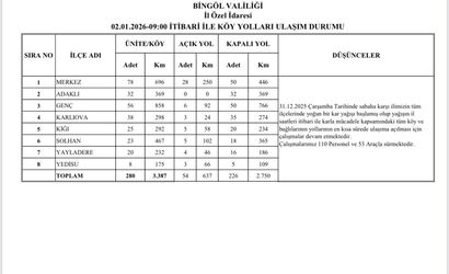 İki gün boyunca etkili olan yoğun kar yağışı, Bingöl kent merkezi ve ilçelerde ulaşımda aksamalara yol açtı. Yağışın ardından ulaşıma kapanan köy yollarının açılması için çalışmalar başlatıldı.