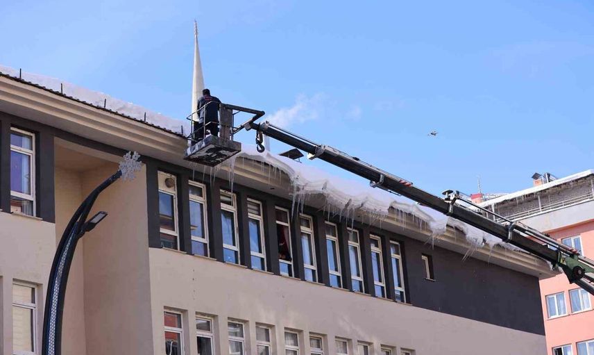 Bingöl Belediyesi, can ve mal güvenliğini tehdit eden buz sarkıtları için kent genelinde çalışma başlattı. Bu çerçevede İtfaiye Müdürlüğü ekipleri, öncelikle okullar ve kamu kurumları olmak üzere kent genelindeki binalarda risk oluşturan sarkıtları tek tek temizledi.