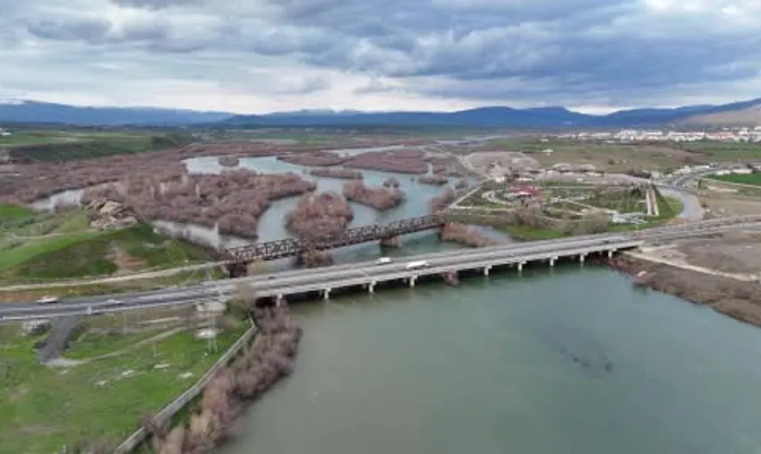 Dron ile kaydedilen görüntülerde, Genç ilçesinin simgelerinden biri olan tarihi köprü özellikle göze çarptı. Nehrin ortasından geçen köprü, yükselen su seviyesiyle birlikte adeta suyla bütünleşmiş bir görünüme kavuştu; bu kareler hem bölgenin doğal hem de kültürel dokusunu aynı çerçevede gösterdi.