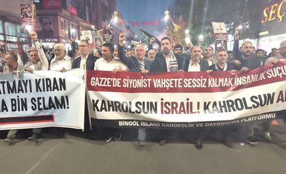 Bingöl'de İsrail'in Gazze'ye saldırılarını protesto etmek için yürüyüş düzenlendi. Katılımcılar, ellerinde Türk ve Filistin bayraklarıyla tekbir getirerek İsrail karşıtı sloganlar attı.