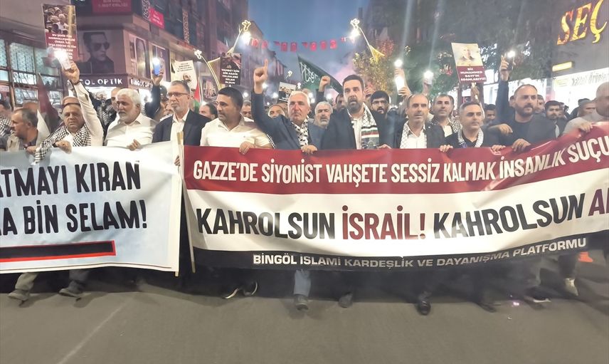 Bingöl'de, İsrail'in Gazze'ye yönelik saldırılarını protesto etmek amacıyla sivil toplum kuruluşlarının öncülüğünde yürüyüş gerçekleştirildi.