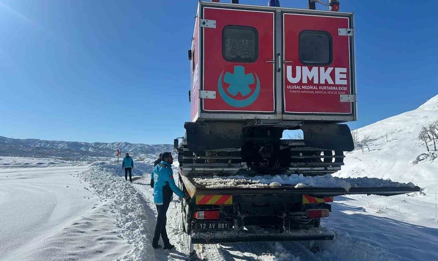 Yoğun kar nedeniyle kara yolu ulaşımının sağlanamadığı bölgeye tam paletli araçla ulaşan UMKE ekipleri, köyde hastaya ilk tıbbi değerlendirmeyi yaptı. Yapılan gerekli müdahalelerin ardından hasta, güvenli bir şekilde 112 Acil Sağlık ambulans ekiplerine teslim edilerek hastaneye sevk edildi.