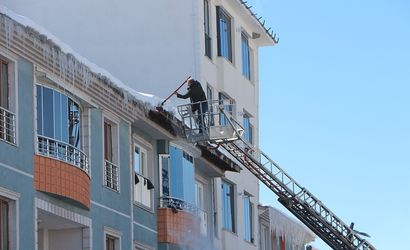 Bingöl'ün Karlıova ilçesinde, yoğun kar yağışı ve düşük sıcaklıkların neden olduğu tehlikeli buz sarkıtları, itfaiye araçlarının desteğiyle kırılıyor.