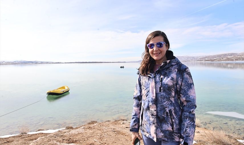Serbest dalış rekortmeni milli sporcu Birgül Erken, Sivas'ın Zara ilçesindeki Tödürge Gölü'nde buz altı tüpsüz serbest yatay dalışta rekor denemesine hazırlanıyor.