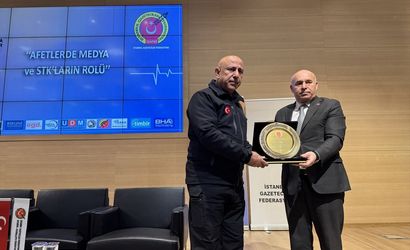 İçişleri Bakanlığı Sivil Toplumla İlişkiler Genel Müdürlüğünün desteğiyle İstanbul Gazeteciler Federasyonu tarafından düzenlenen "Afetlerde Medya ve STK'lerin Rolü" başlıklı panelde, afet süreçlerinde medya ve STK'lerin işbirliği ile kriz yönetimindeki rolü ele alındı. Konuşmaların ardından İstanbul Gazeteciler Federasyonu Genel Başkanı Adil Koçalan, İstanbul Vali Yardımcısı Mahmut Hersanlıoğlu, ASKON Genel Başkanı Orhan Aydın, Biruni Üniversitesi Rektörü Prof. Dr. Adnan Yüksel'e plaket takdim etti.