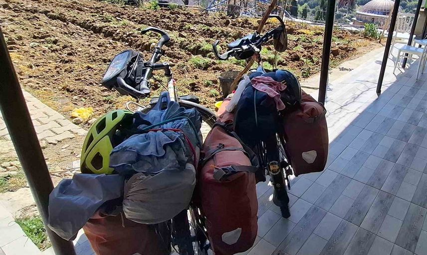 BİSİKLETLE DÜNYA TURUNA ÇIKAN FRANSIZ ÇİFT, MANİSA’NIN SARIGÖL İLÇESİNE BAĞLI ZİYANLAR KÖYÜ’NDE ÇOBANIN EVİNDE TÜRK USULÜ AĞIRLANDI.