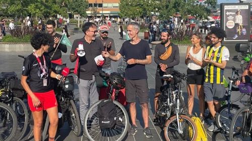 Paris'ten Bakü'ye bisikletle giden aktivistler, iklim değişikliği için farkındalık yaratıyor.