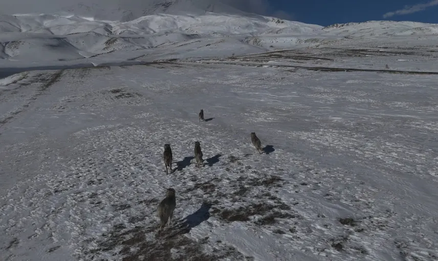 Bitlis Adilcevaz Aydınlar beldesinde kurt sürüsü dronla görüntülendi