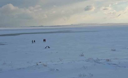 Soğuk hava göl yüzeyini kalın buz tabakasıyla kapladı