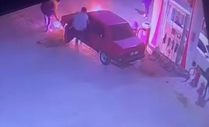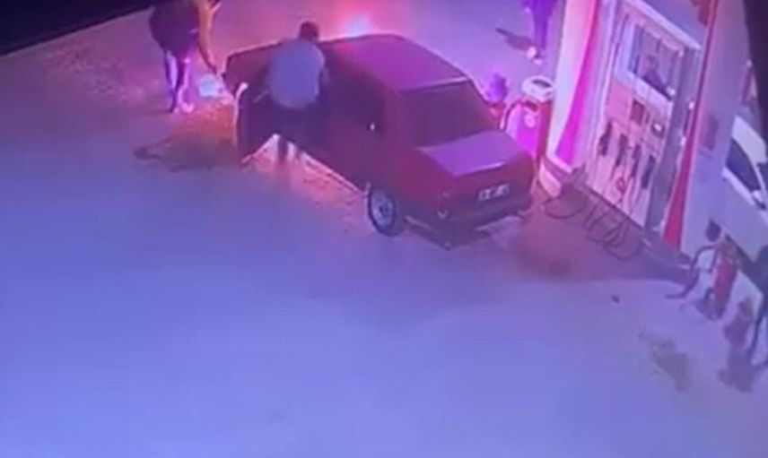 Olay anı, petrol istasyonunun güvenlik kameralarına yansıdı. Görüntülerde sürücünün ve yanındakilerin ilk anda büyük bir panik yaşadığı, ardından istasyon çalışanının hızla müdahale ettiği görüldü.