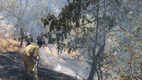 Bitlis Hizan'da Yelkıran köyündeki ağaçlık yangın ekiplerce söndürüldü