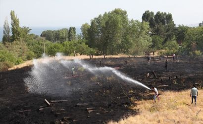 Bitlis'in Ahlat ilçesinde mezarlıkta çıkan ot yangını söndürüldü.
