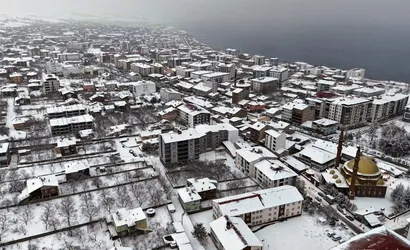Kar yağışı sonrasında beyaz örtüyle kaplanan Bitlis'in sakin şehir (Cittaslow) unvanlı ilçesi Ahlat, havadan kaydedilen görüntülerle dikkat çekti. İlçe merkezi, kentin tarihi dokusunun karla buluştuğu estetik bir görünüm sundu.