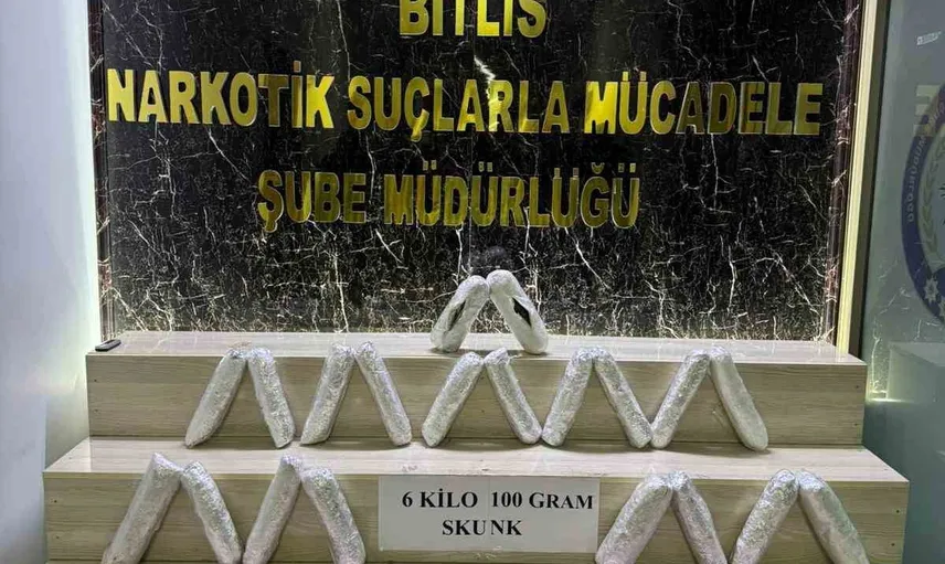 BİTLİS EMNİYET MÜDÜRLÜĞÜ EKİPLERİNİN UYUŞTURUCU İLE MÜCADELE KAPSAMINDA YÜRÜTTÜĞÜ ÇALIŞMALAR NETİCESİNDE 6 KİLO 100 GRAM SKUNK MADDESİ ELE GEÇİRİLDİ.