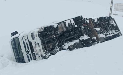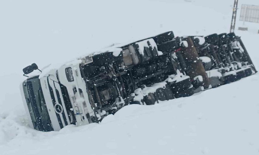 Edinilen bilgilere göre, kar ve tipi nedeniyle kayganlaşan yolda direksiyon hâkimiyetini kaybeden Sait Erten yönetimindeki 31 V 9316 plakalı tır, kontrolden çıkarak yol kenarındaki şarampole devrildi.