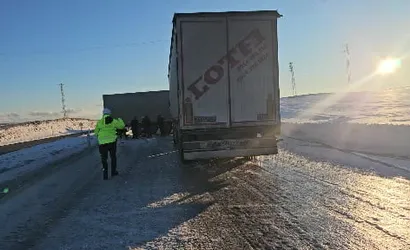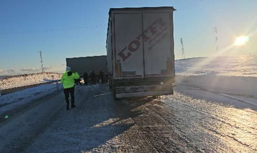 Bitlis’in Adilcevaz ilçesinde etkili olan soğuk hava koşulları nedeniyle yolda oluşan buzlanma, yabancı plakalı bir tırın kontrolünü kaybetmesine ve yolun trafiğe kapanmasına neden oldu.