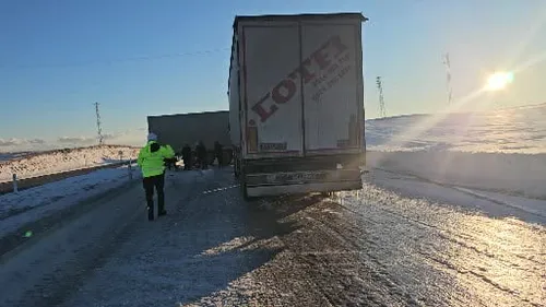 Bitlis’te buzlanan yolda kayan yabancı plakalı tır, Adilcevaz-Erçiş yolunu kapattı