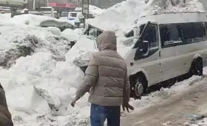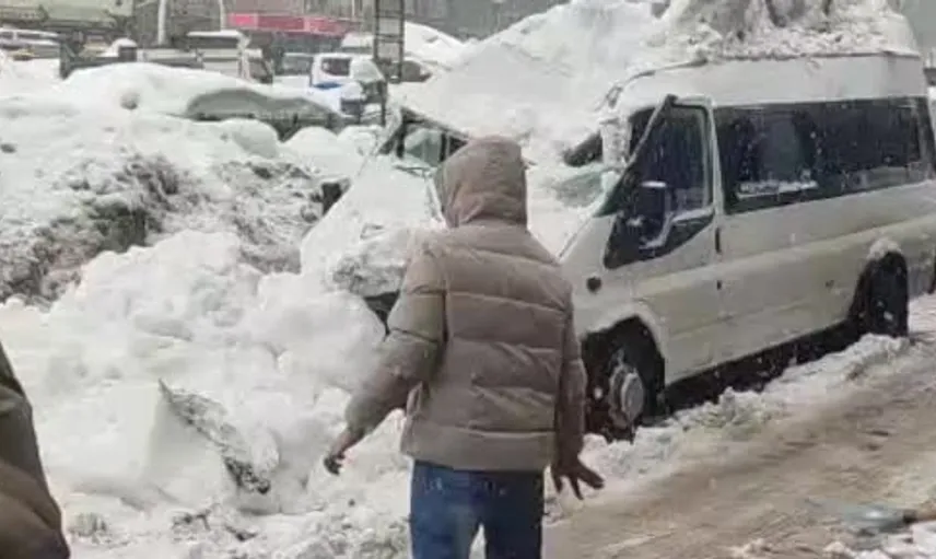 Bitlis’te çatıda biriken kar kütlesi minibüsün üzerine düştü