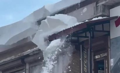 Bitlis'te çatılardan düşen kar kütleleri kısa süreli paniğe neden oldu