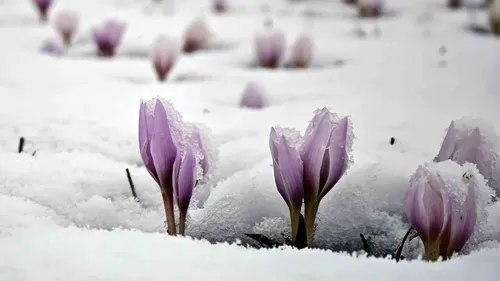 Bitlis'in Tatvan ilçesindeki Güzeldere Vadisi'nde kar örtüsü altında açan beyaz, pembe ve mor çiğdemler fotoğrafçılar tarafından görüntülendi.