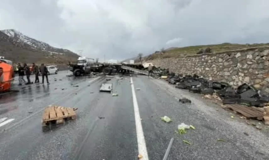 Bitlis-Van karayolunda Karayolları'na ait iş makinesi ile sebze yüklü bir tırın çarpışması sonucu 3 kişi yaralandı.
