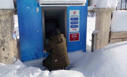 Kar yığınlarıyla çevrilen para çekme noktalarında işlem yapmak isteyen vatandaşlar zor anlar yaşıyor. ATM'lerin önünde ayakta duracak alan bulamayanlar, karın üzerine oturarak para çekmek zorunda kalıyor. Ortaya çıkan görüntüler, kışın Bitlis'te ne denli çetin geçtiğini bir kez daha gözler önüne seriyor.