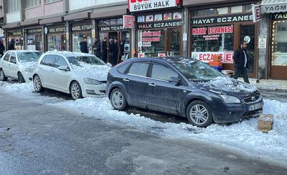 Bitlis'te çatıdan üzerlerine kar kütlesi düşen 3 otomobilde hasar oluştu.