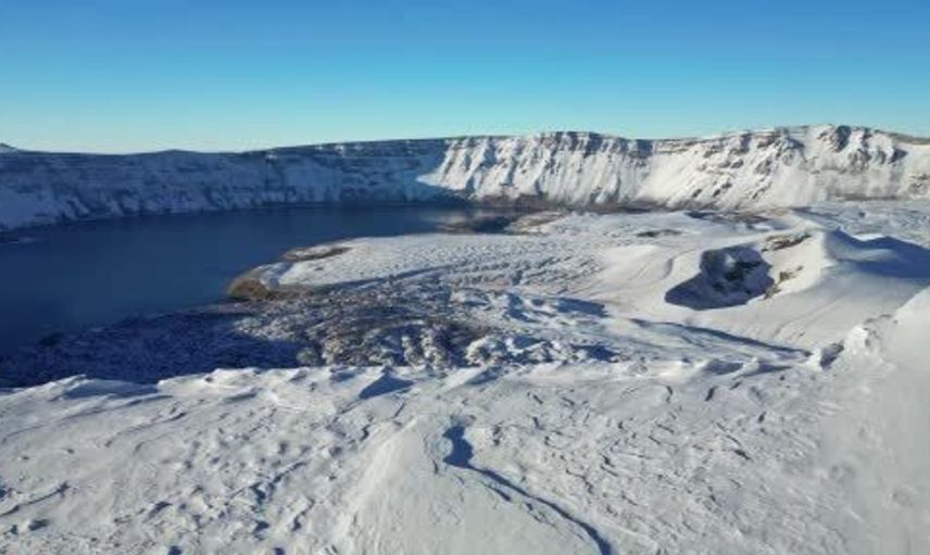 Nemrut Kalderası: Krater gölünün kış görüntüsü