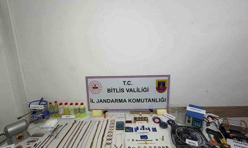Bitlis İl Jandarma Komutanlığı Kaçakçılık ve Organize Suçlarla Mücadele Şubesi ekipleri tarafından yürütülen teknik ve fiziki takip çalışmaları sonucu, bazı şüphelilerin gerçek gram altını eriterek bakır yoğunluklu materyallerle karıştırmak suretiyle sahte altın imal ettikleri ve piyasaya sürdükleri belirlendi.