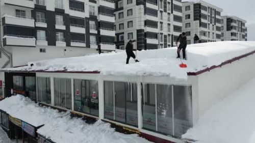 Bitlis’te yoğun kar sonrası çatılarda biriken karlar esnaf ve belediye ekiplerince kontrollü şekilde temizleniyor; amaç can ve mal güvenliği.