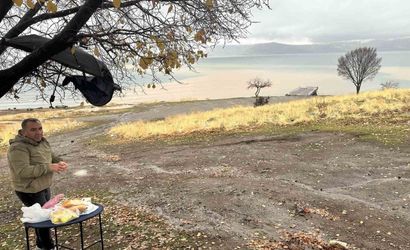 Bitlis'te yükseklerde kar, Van Gölü kıyısında yazdan kalma görüntüler