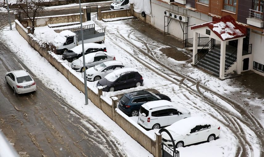 Bitlis'te gece başlayan ve aralıklarla devam eden kar nedeniyle kent beyaza büründü.