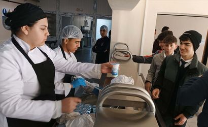 Bitlis'in Tatvan ilçesindeki Seydi Ali Reis Mesleki ve Teknik Anadolu Lisesi Yiyecek İçecek Hizmetleri Bölümü öğrencileri, taşımalı eğitim sistemi ile köylerden ilçe merkezine gelen yaklaşık 600 öğrenci için yemek hazırlamaktadır.
