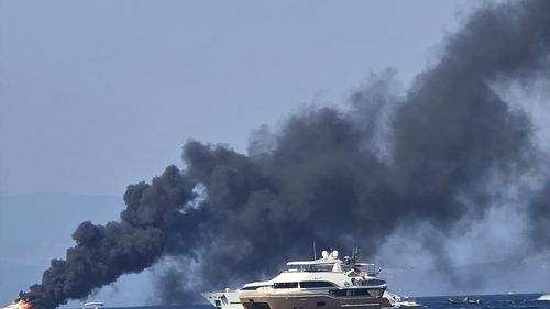 Bodrum açıklarında çıkan yangın sonrası 'Melinay' isimli motoryat battı, 4 kişi kurtarıldı.